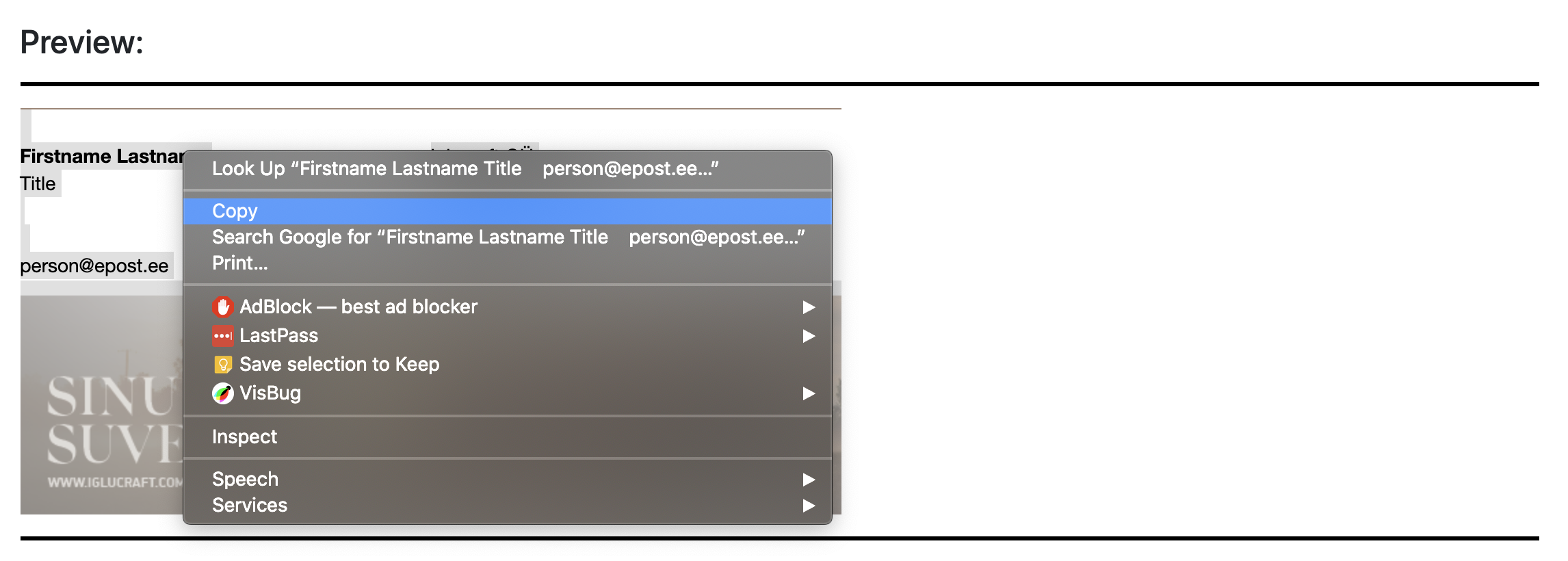 Select all of the email footer content. ( It should autoselect when clicking on it )